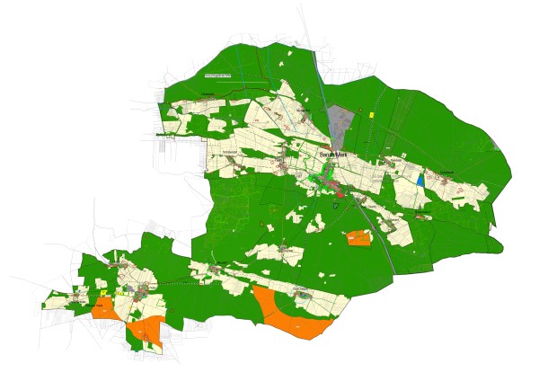 Leistungen: Änderung des Flächennutzungsplans; Durchführung Verfahren; planungsrechtliche Beratung; Erarbeitung eines Räumlichen Gesamtkonzepts für die Windenergienutzung; Herstellung einer digitalen Planzeichnung im XPlanGML-Format; Erarbeitung einer Kommunalen Strategie zur Energienutzung und Energieeinsparung in der Stadt Baruth/Mark im Kontext der Bodennutzung im Rahmen der Änderung des Flächennutzungsplans der Stadt Baruth/Mark