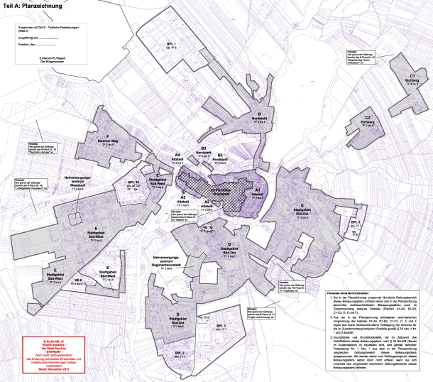 Die Stadt Parchim überplante als erste Gemeinde im Land Mecklenburg-Vorpommern ihre gesamte Kernstadt mit einen strategischen B-Plan nach § 9 Abs. 2a BauGB. Ziel war es, ihr Einzelhandels- und Zentrenkonzept stadtweit verbindlich umzusetzen. Anliegen war es inbesondere, die mit viel Einsatz in den letzten Jahren sanierte Altstadt vor Funktionsverlust zu schützen und der Bevölkerung ein wohnungsnahes Nahversorgungsangebot zu sichern. Unser Büro wurde mit der Erarbeitung des gesamtstädtischen Bebauungsplans betraut.