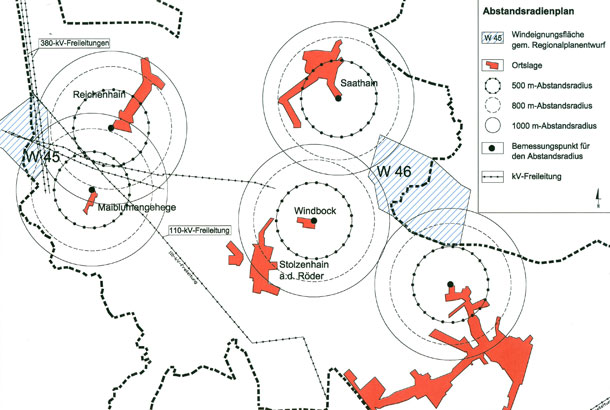Bebauungspläne sind an die Ziele der Raumordnung anzupassen. Mit der Aufstellung des Teilregionalplans "Windkraft" der Region Lausitz-Spreewald ergab sich diese Notwendigkeit für die Gemeinde Röderland. Im Rahmen eines Bebauungsplans galt es, die vom Teil-Regionalplan vorgegebenen Flächen W 45 und W 46 räumlich so zu spezifizieren, dass die Nutzung der Flächen zugunsten der Windenergie auch unter Berücksichtigung spezifischer – auf Regionalpanebene nicht berücksichtigter – Belange konfliktfrei möglich ist. Unter anderem waren erforderliche Abstände zu Starlstromleitungen zu beachten.